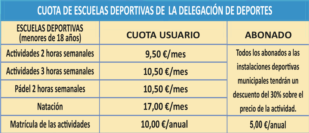 Las escuelas deportivas comienzan el 1 de octubre de 2024 y finalizan el 30 de mayo de 2025.