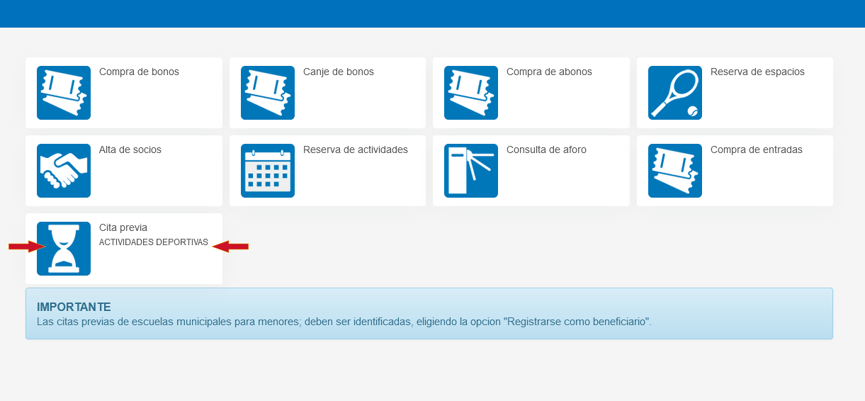 Telemáticamente. A través de la web. Al entrar en la web debe pinchar en el enlace con el texto: Cita previa deportes. Le llevará a una web en la que debe identificarse si ya es usuario/a, si no lo es realice el registro y cuando reciba la clave de acceso (el proceso es inmediato) se podrá identificar y acceder para solicitar la cita previa.