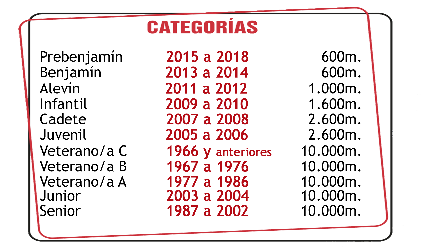 Todos/as los atletas estarán obligados a realizar la inscripción y deberán identificarse a través del dorsal que se les asigne para poder participar tanto en la carrera absoluta como en las de menores.
